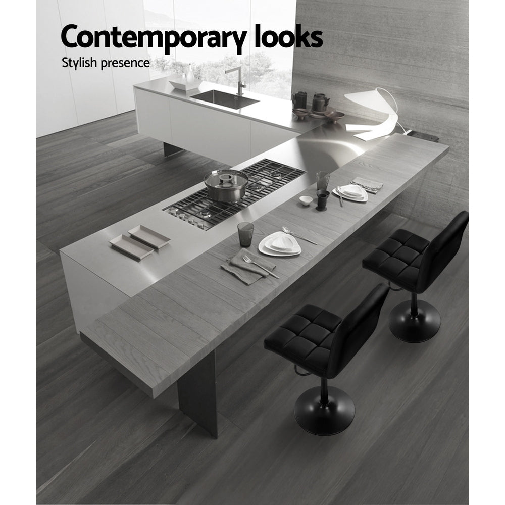 Chair Stools - PU Leather - Gas Lift/Swivel - Black