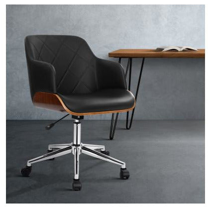 Wood, leather and chrome in total harmony. Such is the eclectic design of our Artiss Portia Office Chair that stands out from other mundane offerings. The seat is meticulously crafted with a contoured wooden frame, cushioned support and premium PU leather upholstery. You have full mobility with this office chair as the seat rotates 360° to face any direction with ease and the corrosion-resistant chrome base has five smooth castor wheels attached. It is also height-adjustable to allow you to be seated at your most comfortable position. So add a touch of contemporary living to your home or office interior with our sophisticated plush office chair.