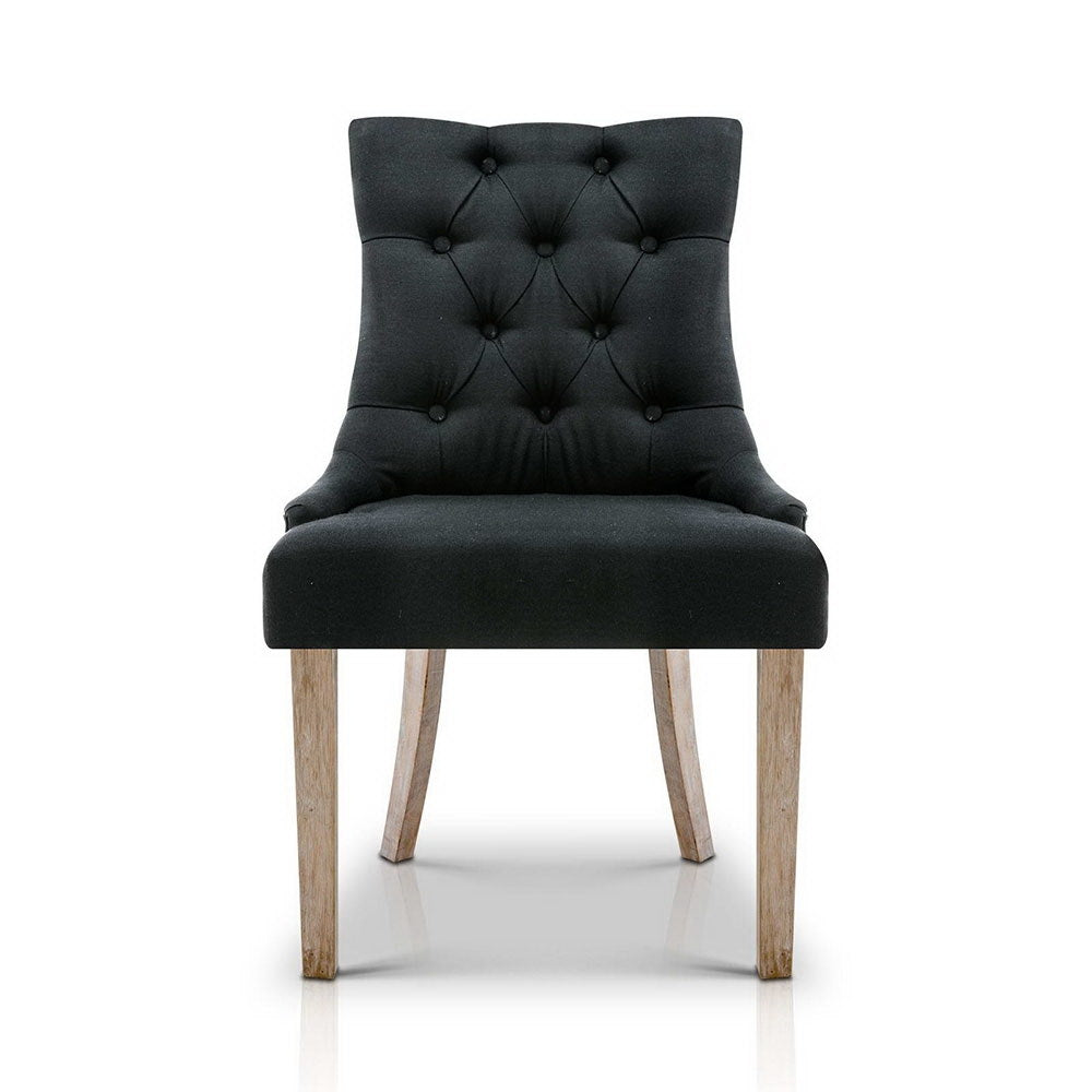 Artiss Dining Chairs Chair French Provincial Wooden Fabric Retro Cafe Black x1