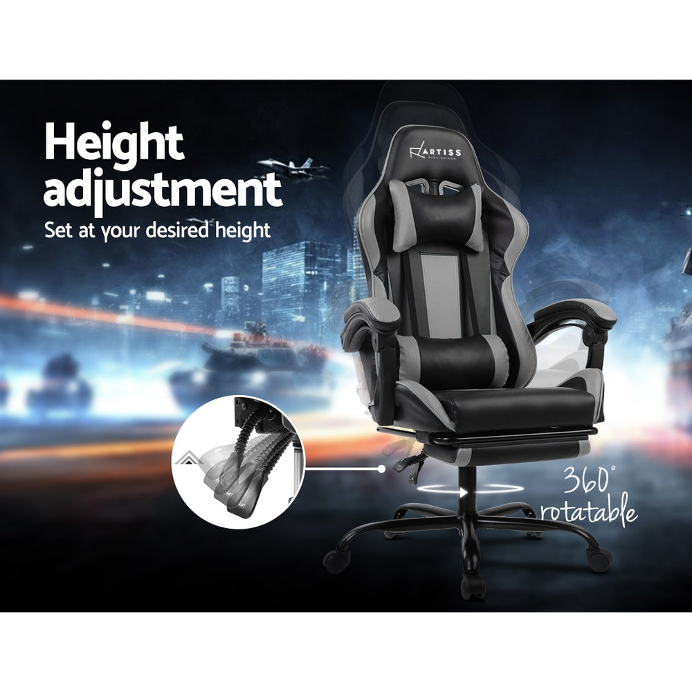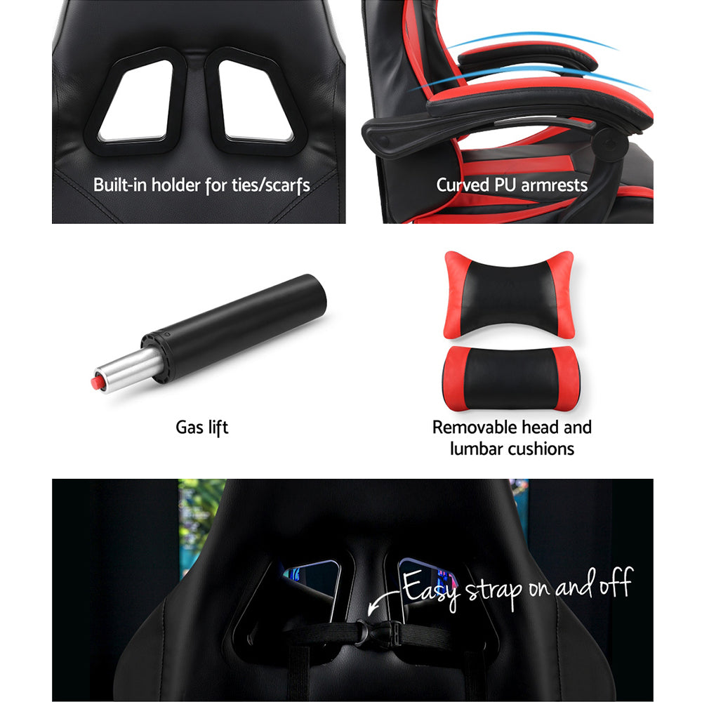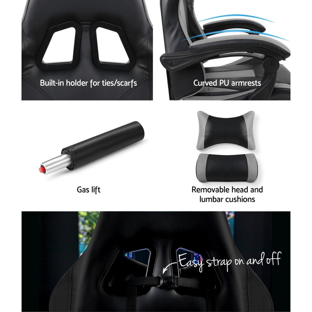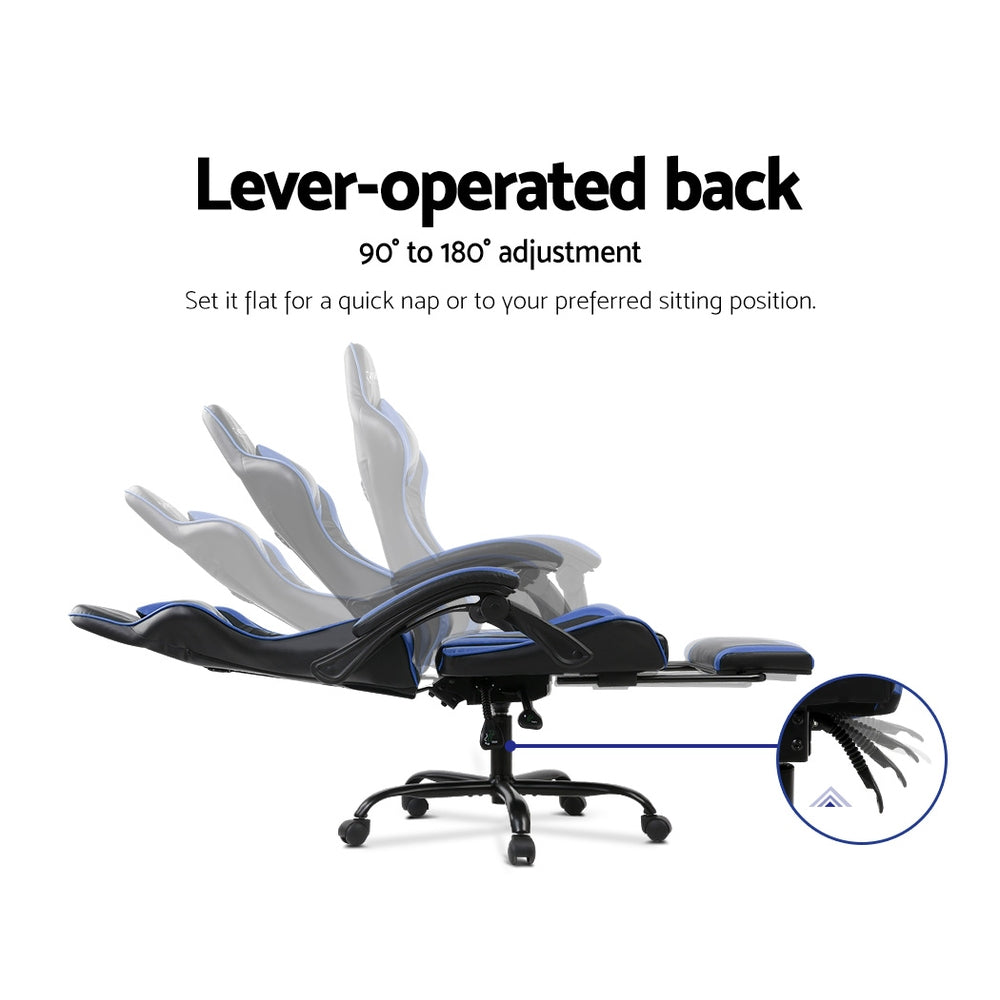 Gaming Chair - Racer Style - High Back - Lumbar Cushion - Recliner - Gas Lift/Swivel - 3 Colours - (Black-Blue, Black-Grey, Black-Red)
